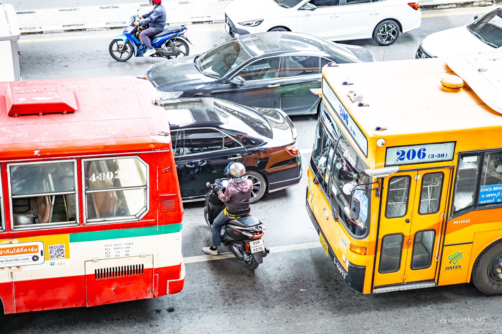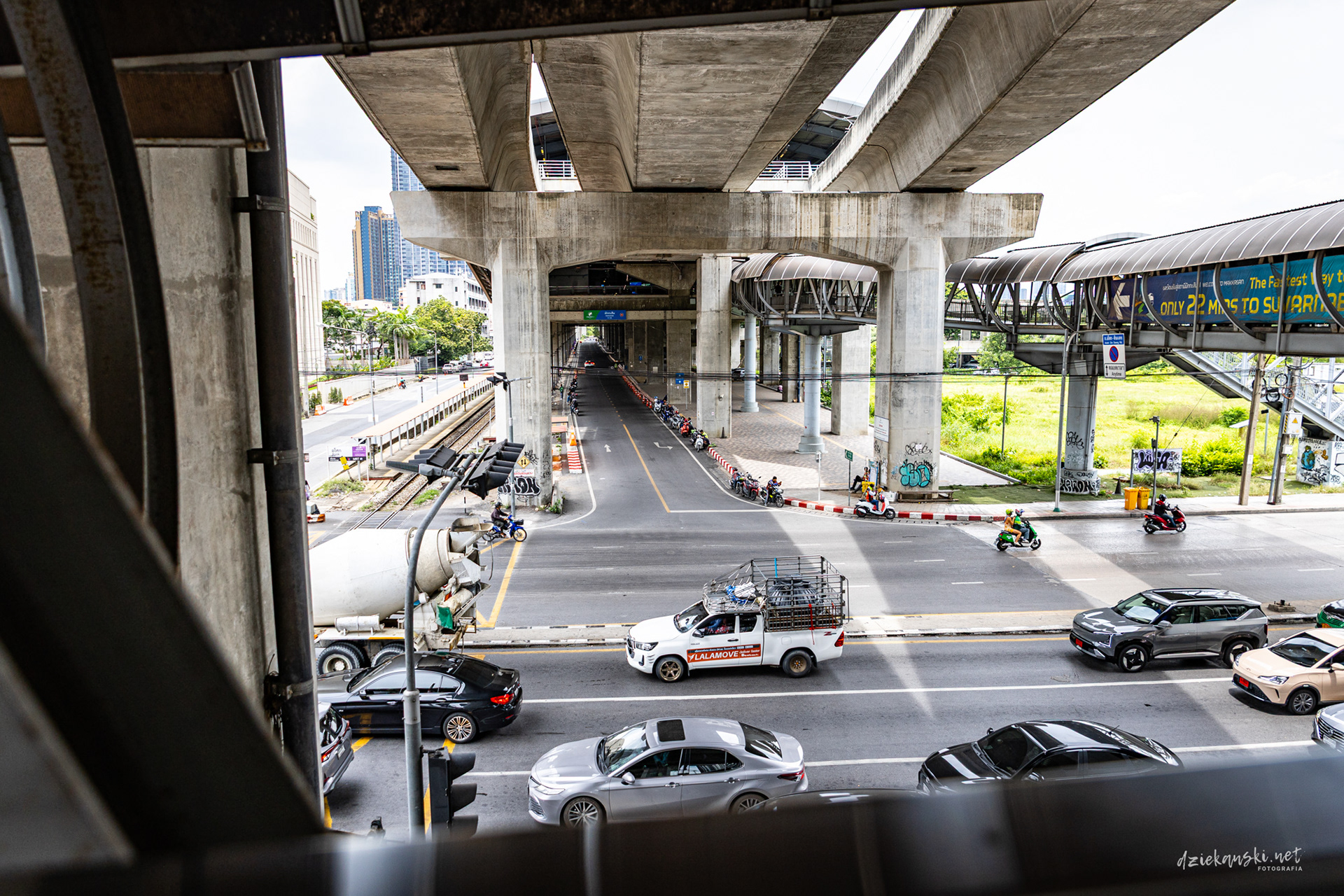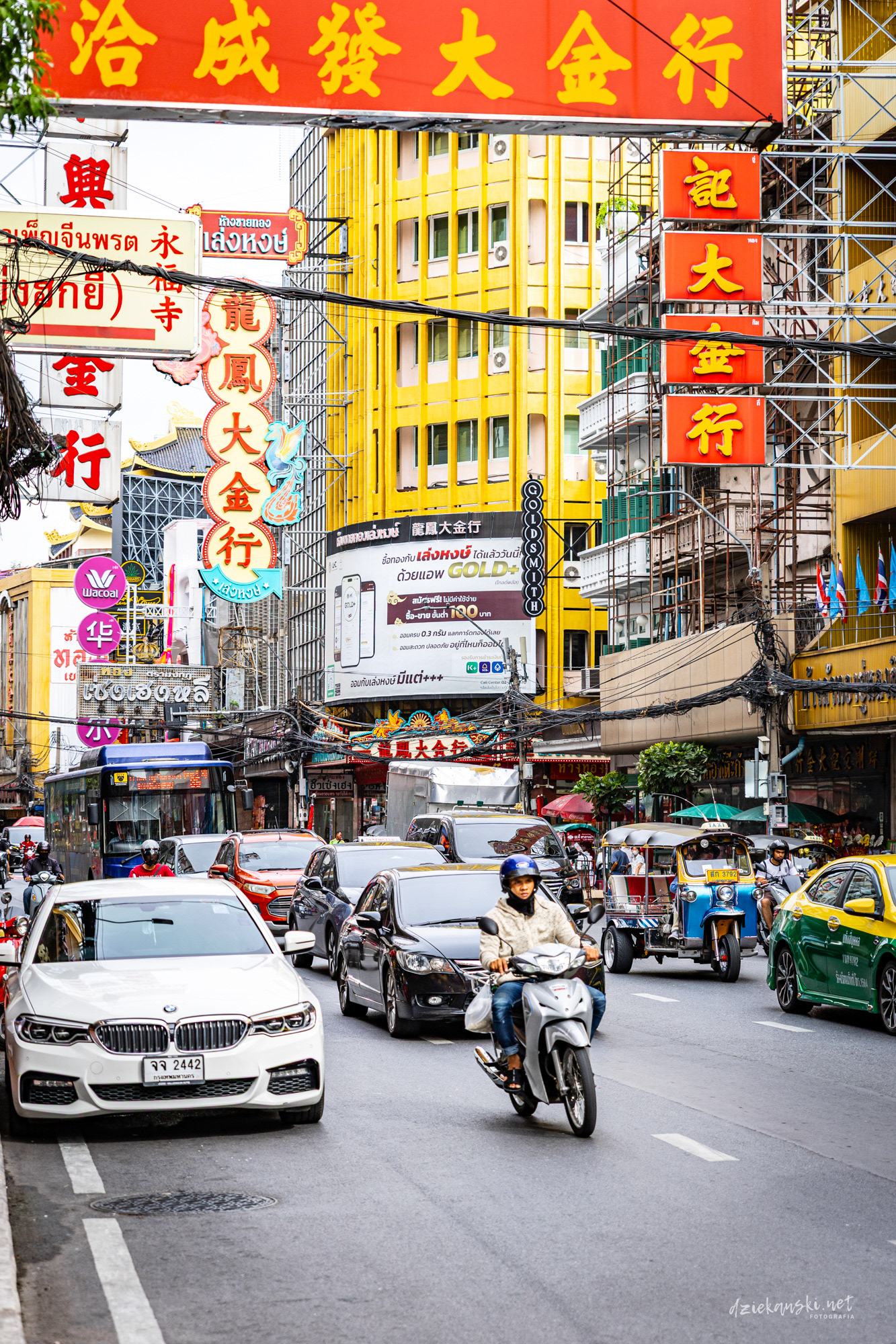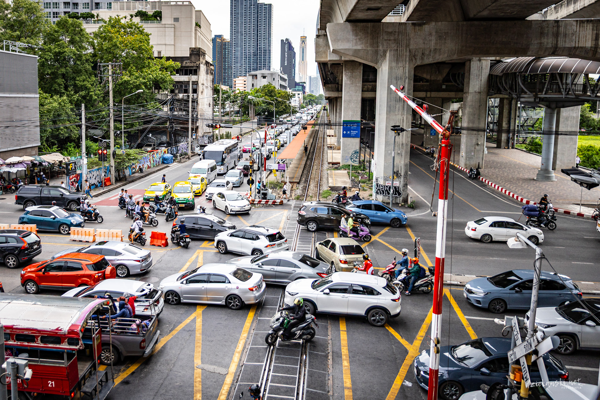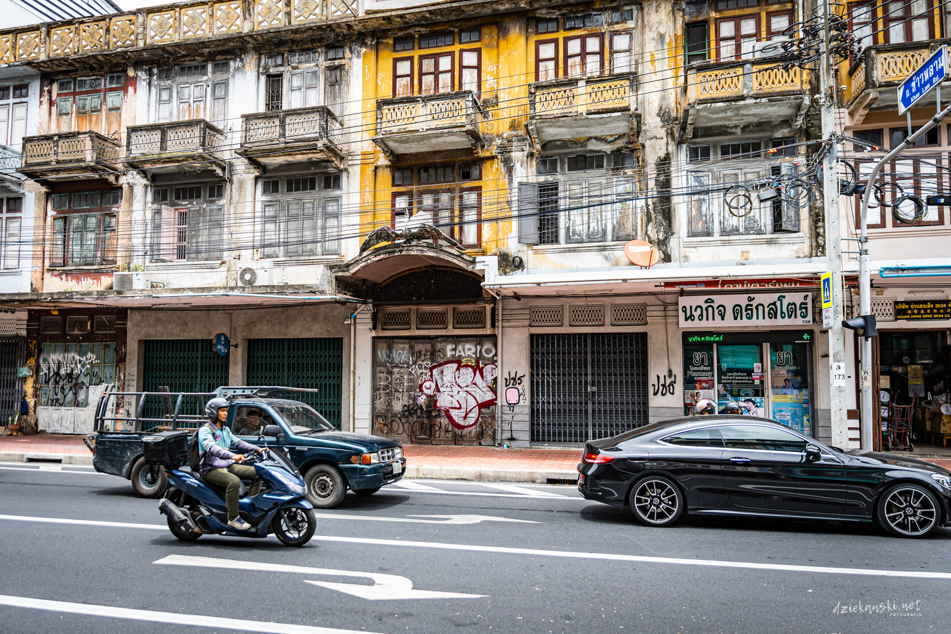 Panorama Bangkoku na poziomie ulicy wyróżnia się plątaniną czarnych kabli zwisających ze słupów. Te pajęczyny to mieszanka prądu, internetu i telefonii, stanowiąca charakterystyczny element miasta.