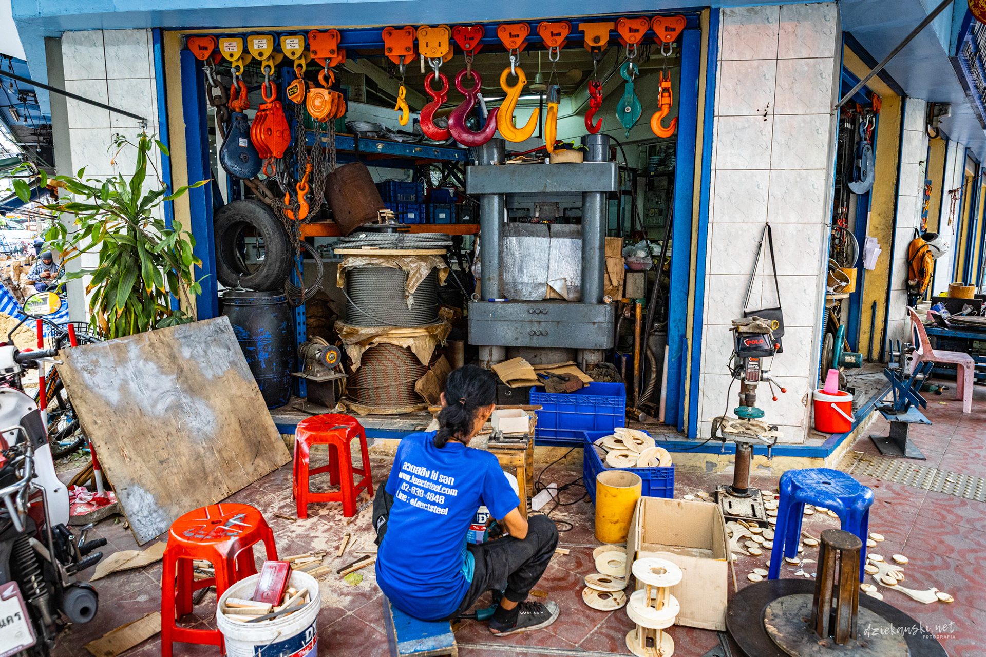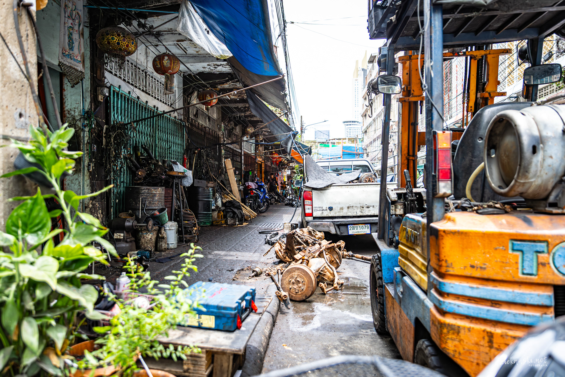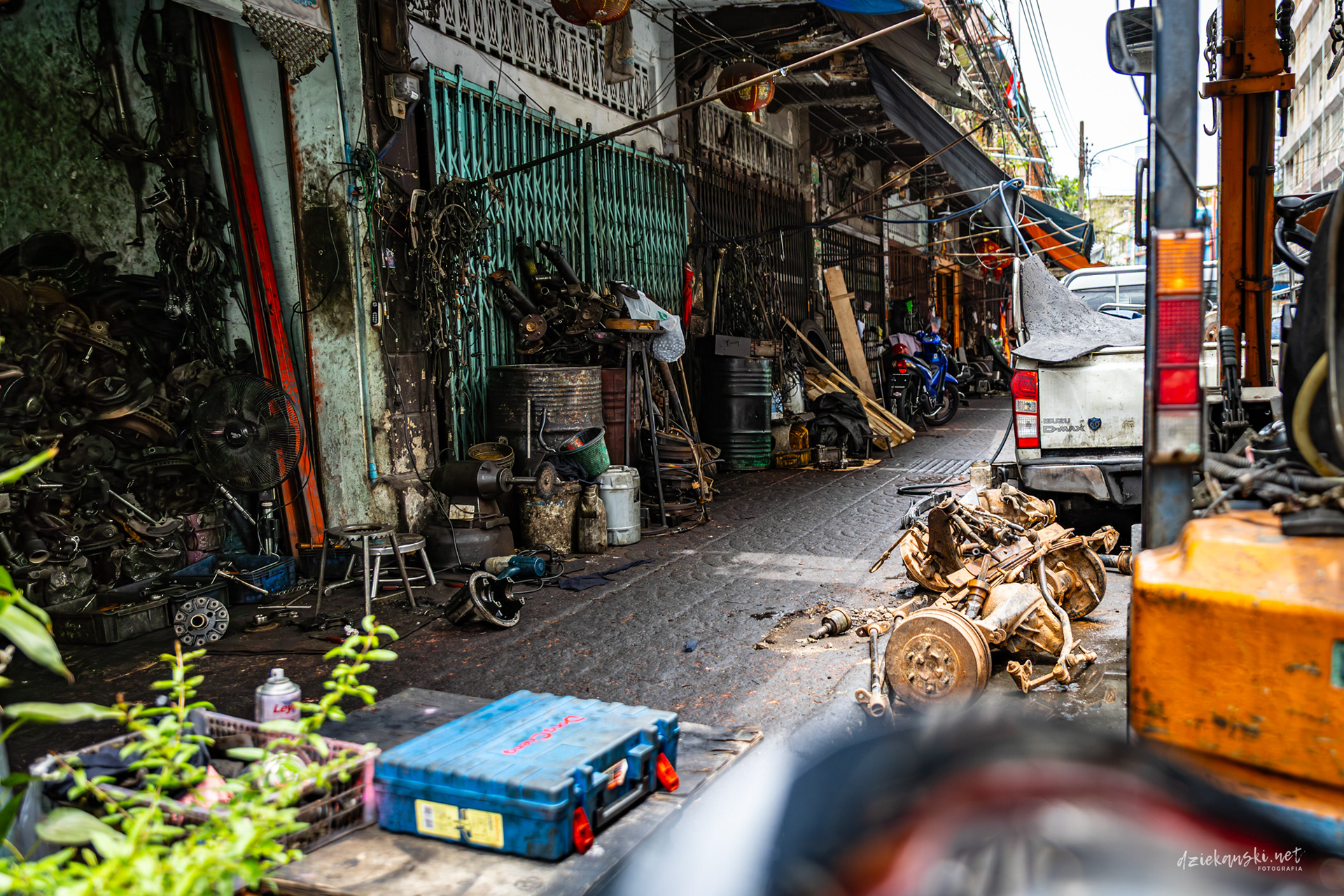 Talad Noi od dawna znane jest jako „silnikowe podwórko” Bangkoku, gdzie wąskie uliczki zastawione są silnikami, trybami i złomem. Mechanicy i handlarze pracują w warsztatach pod gołym niebem, a rytm recyklingu i napraw od dziesięcioleci definiuje tę dzielnicę.