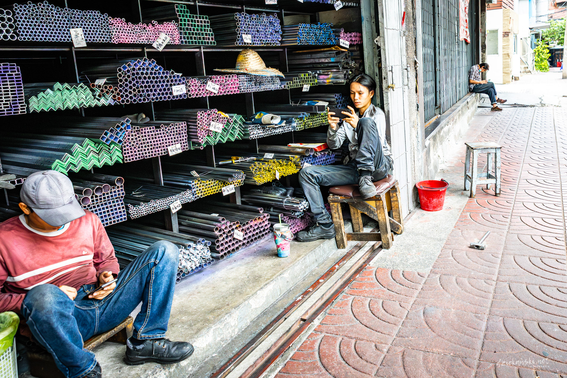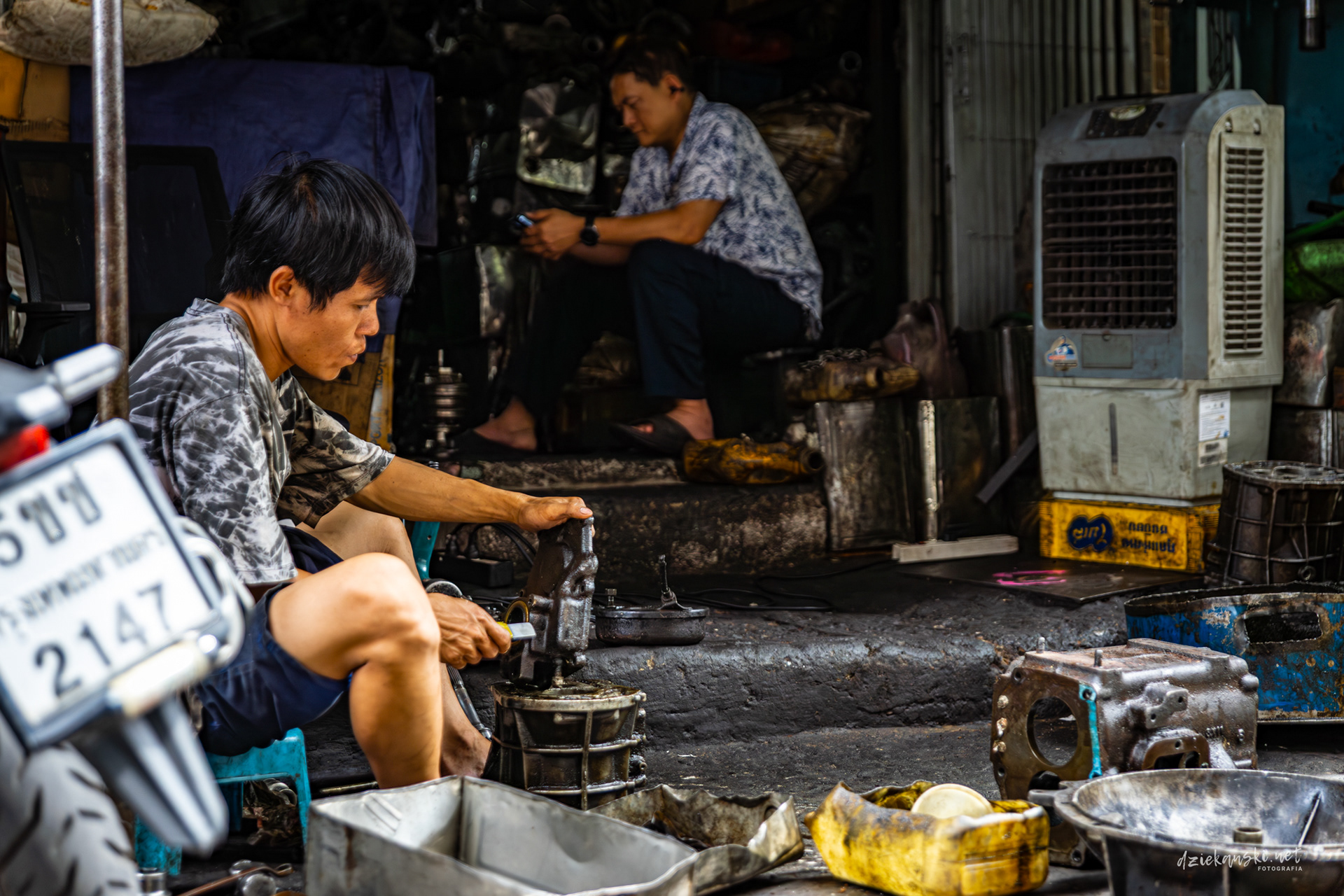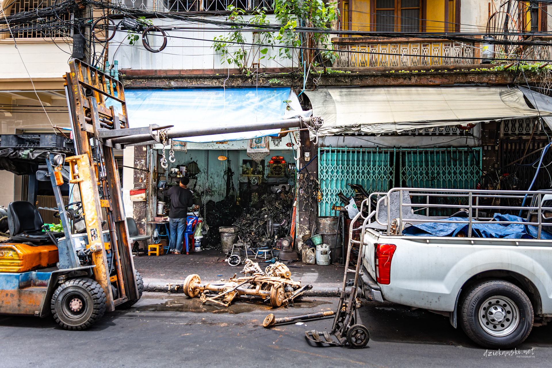 Talad Noi od dawna znane jest jako „silnikowe podwórko” Bangkoku, gdzie wąskie uliczki zastawione są silnikami, trybami i złomem. Mechanicy i handlarze pracują w warsztatach pod gołym niebem, a rytm recyklingu i napraw od dziesięcioleci definiuje tę dzielnicę.