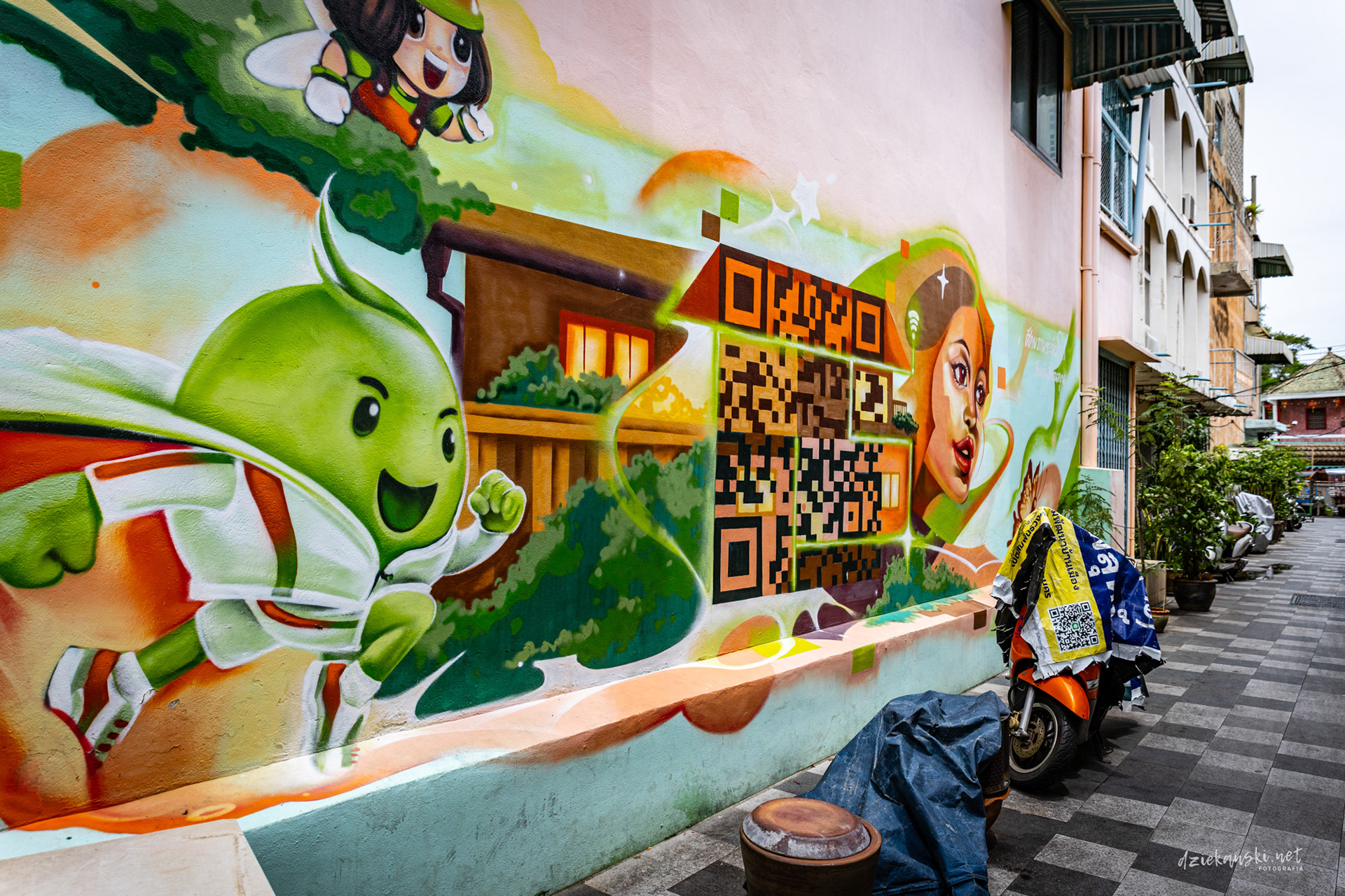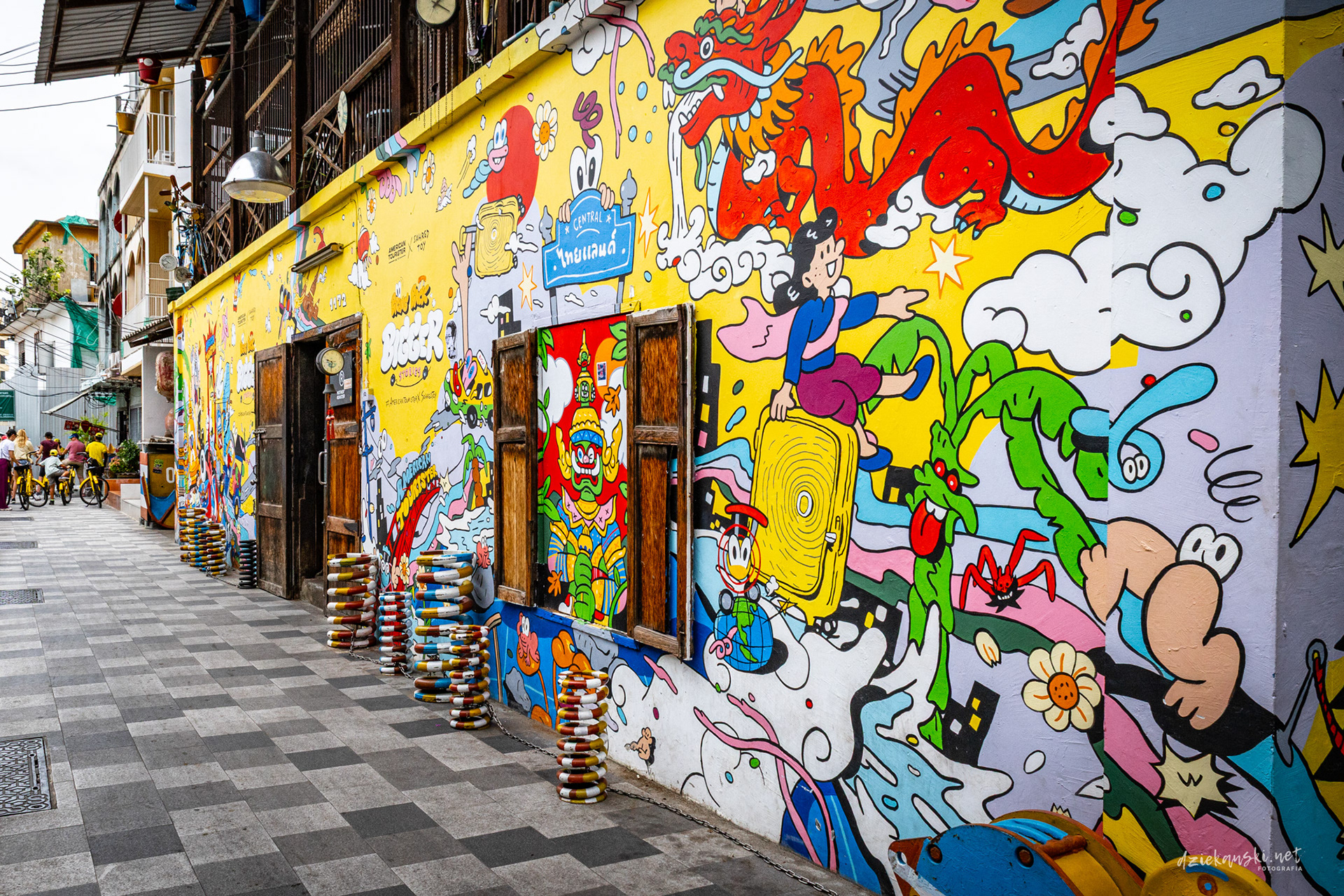 Ciekawostka: Wiele murali powstało w ramach Bangkok Design Week, który uczynił z tej dzielnicy hotspot sztuki ulicznej i kreatywnych inicjatyw.