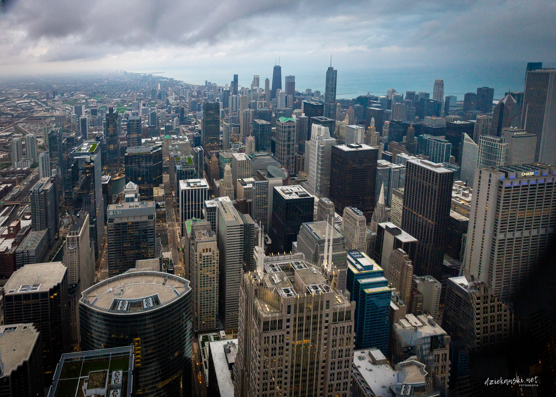 Z tarasu widokowego Willis Tower, dawnego Sears Tower, Chicago rozpościera się bez końca — między jeziorem Michigan a równinami Środkowego Zachodu. Zbudowany w 1973 roku wieżowiec był przez lata najwyższym budynkiem świata, pozostając do dziś symbolem ambicji i siły inżynierii miasta. Szklane balkony Skydeck zapraszają, by wyjść dosłownie w powietrze, stojąc wysoko ponad miastem. Patrząc stamtąd, widzi się nie tylko panoramę Chicago, ale i ogrom amerykańskiego interioru — dowód, jak z małej osady nad rzeką powstała globalna metropolia.